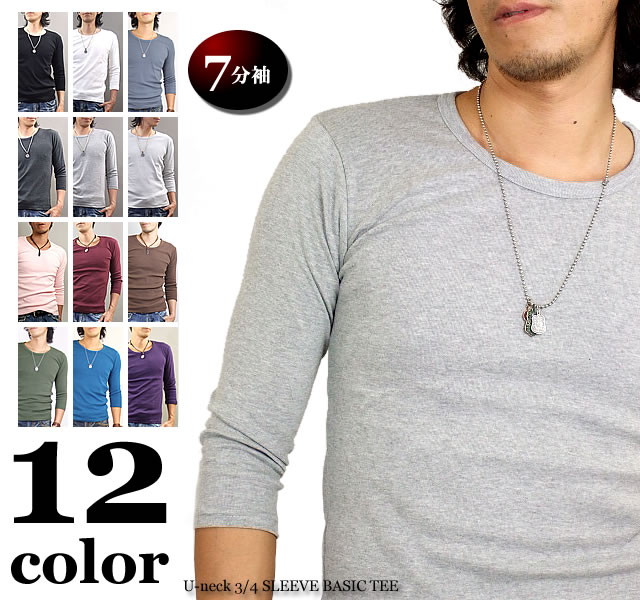 【Uネック】7分袖ロンT 無地Tシャツ(MEN'S T-SHIRTS メンズ 無地 Tシャツ七分袖 7分丈 七分丈 ロンT 長袖Tシャツ ホワイトWHITE白 ブラックBLACK黒 男性)M-XL(LL)重ね着も◎万能ロンT♪10P26Jan12【あす楽対応_九州】 商品購入ページへ | ||